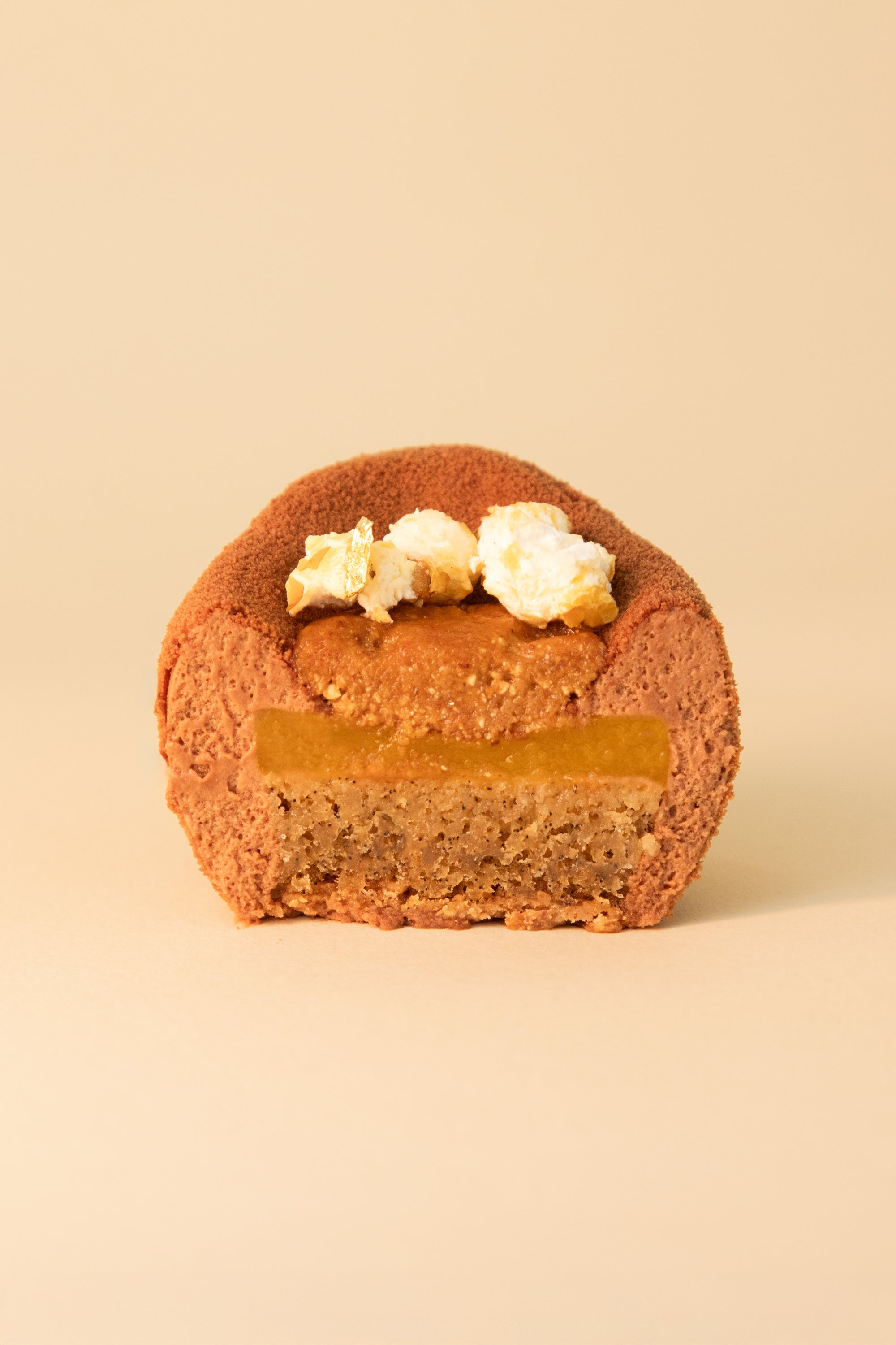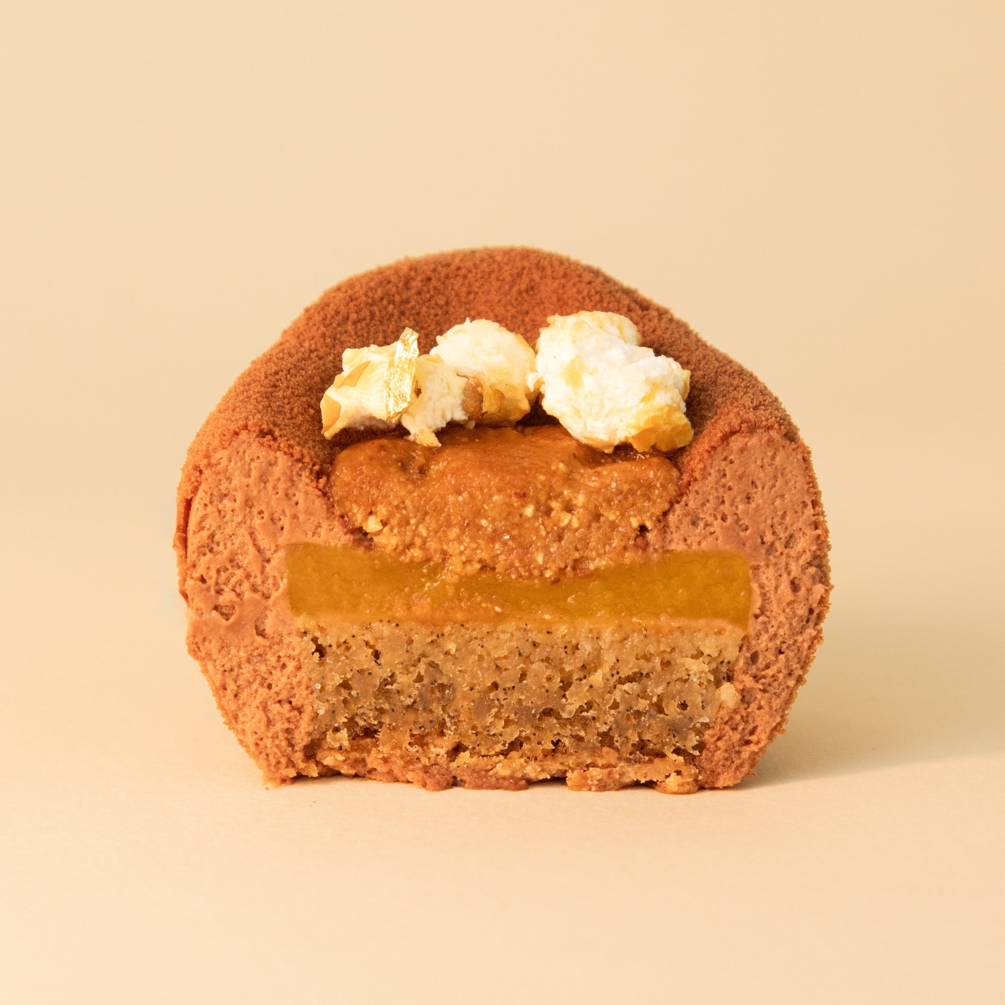 La gourmandise d’une Pâques réussie ! Pop corn caramélisé, praliné ultra fondant, onctueuse mousse aux deux chocolat et coulis mange-passion, un entremets digne d’un grand dessert.