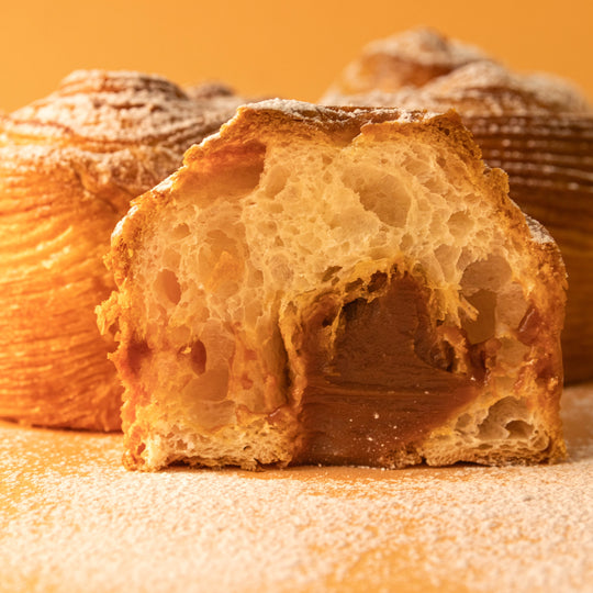 Toute la générosité d’une pâte à croissant pur beurre, délicatement feuilletée, renfermant un cœur fondant de caramel au beurre salé. Une viennoiserie réconfortante, croustillante à l’extérieur et ultra gourmande à l’intérieur, à savourer à tout moment de la journée.