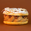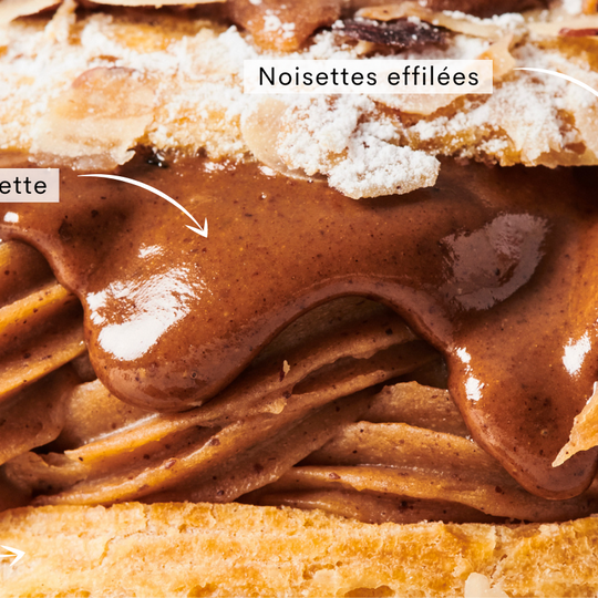 Le Chef Philippe Conticini revient sur la forme historique de son Paris-Brest, avec une gourmandise au praliné inégalée : crème légère au praliné et un praliné 69% de fruits secs (amandes et noisettes) pur coulant.
